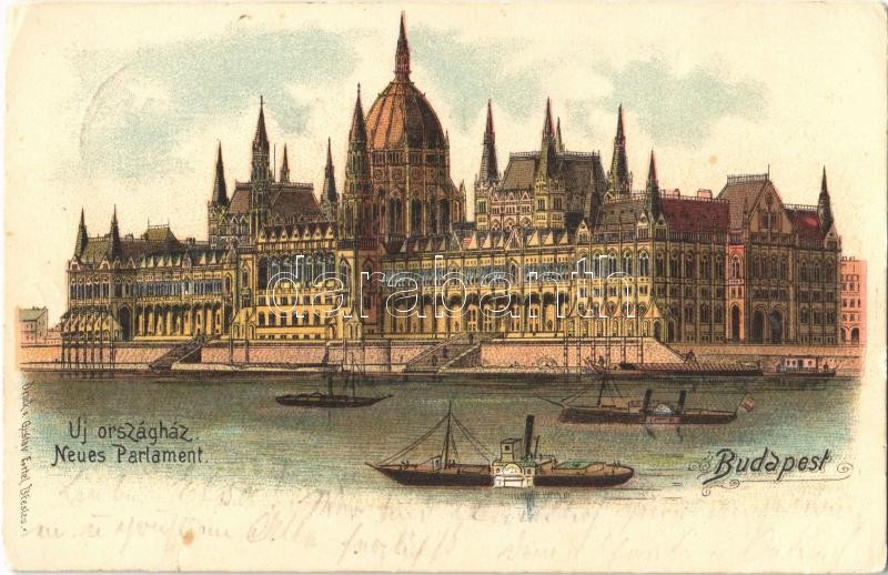 1902 Budapest V. Új Országház. Gustav Ertel litho (EK) https://www.darabanth.com/de/363-Fernauktion/363.0/Ansichtskarten/Ungarn~1500005/1902-Budapest-V-Uj-Orszaghaz-Gustav-Ertel-litho-EK~II2096705