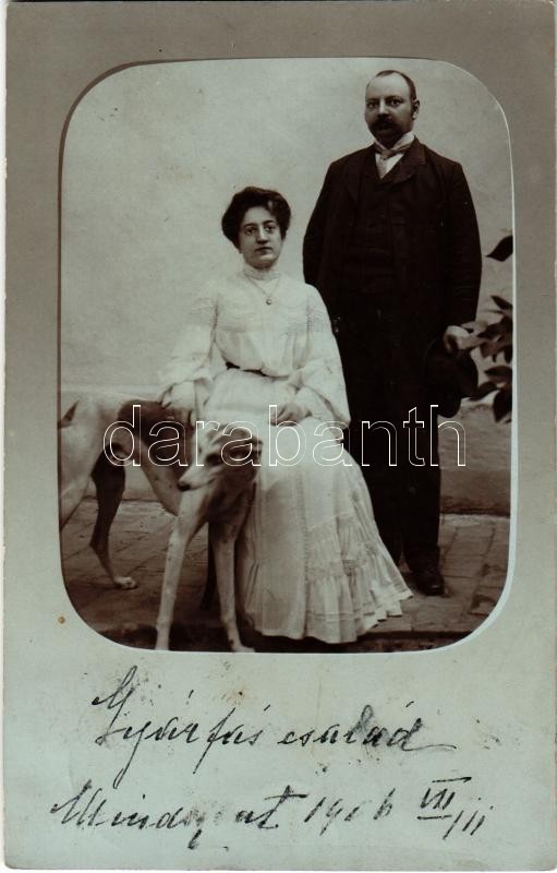 1906 Mindszent, Gyárfás család és kutyájuk. photo (EK) https://www.darabanth.com/de/363-Fernauktion/363.0/Ansichtskarten/Ungarn~1500005/1906-Mindszent-Gyarfas-csalad-es-kutyajuk-photo-EK~II1949453