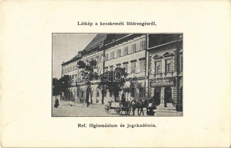 Beschreibung: 1911 Kecskemét, Református Főgimnázium és Jogakadémia, Fischl Dávid könyvnyomdája az 1911. július 8-ai földrengés után