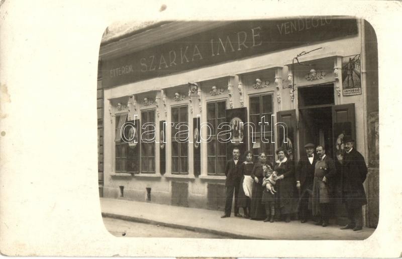 Beschreibung: 1920 Budapest XIV. Aréna út (ma Dózsa György út), Szarka Imre féle Vendéglő a Kéményseprőhöz, étterem. Szarka Imre levele a hátoldalon. photo (fl)
