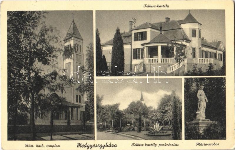 1940 Medgyesegyháza, Római katolikus templom, Telbisz-kastély, parkrés... https://www.darabanth.com/de/363-Fernauktion/363.0/Ansichtskarten/Ungarn~1500005/1940-Medgyesegyhaza-Romai-katolikus-templom-Telbisz-kastely-parkreszlet-Maria-szobor~II2097662