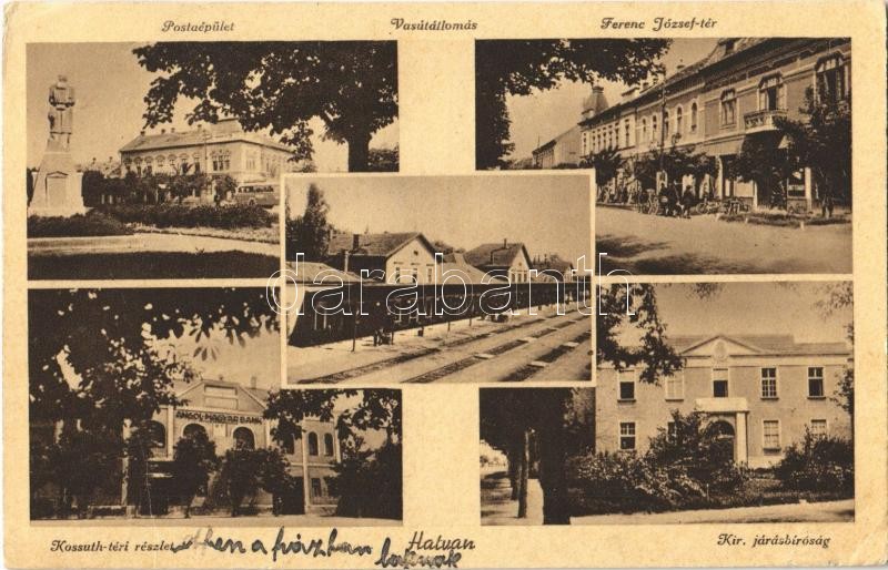 1942 Hatvan, Postaépület, vasútállomás, Ferenc József tér, Kossuth tér... https://www.darabanth.com/de/363-Fernauktion/363.0/Ansichtskarten/Ungarn~1500005/1942-Hatvan-Postaepulet-vasutallomas-Ferenc-Jozsef-ter-Kossuth-teri-reszlet-kir-jarC3~II2099150