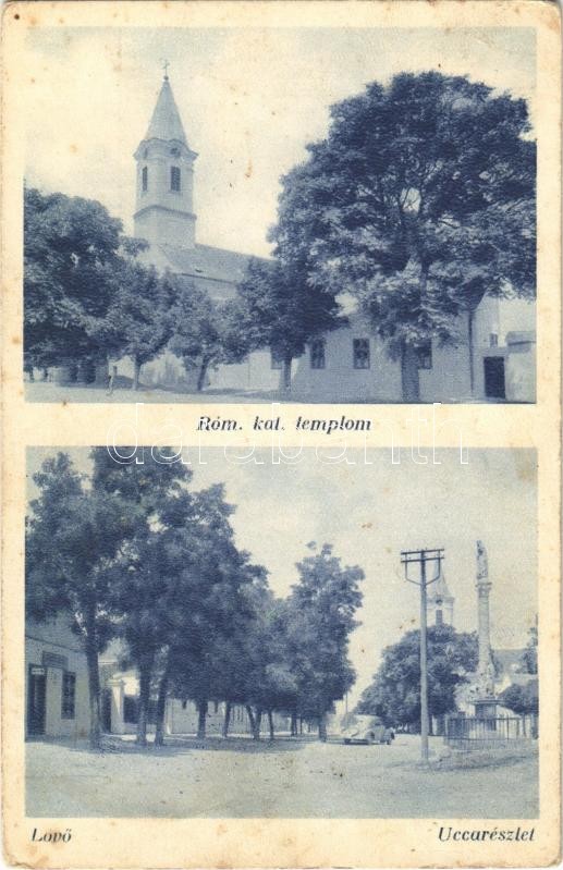 1942 Lövő, Római katolikus templom, utcarészlet (Rb) https://www.darabanth.com/de/363-Fernauktion/363.0/Ansichtskarten/Ungarn~1500005/1942-Lovo-Romai-katolikus-templom-utcareszlet-Rb~II2098017