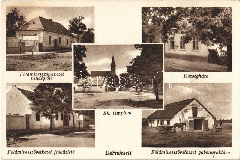 1951 Darnózseli, Földmívesszövetkezet vendéglője, községháza, római katolikus templom, Földmívesszövetkezet fióküzlete és gabonaraktára. Özv. Horváth Richárdné kiadása (EK)