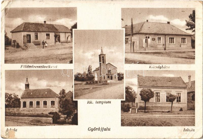 1954 Győrújfalu, Földmívesszövetkezet, községháza, római katolikus tem... https://www.darabanth.com/de/363-Fernauktion/363.0/Ansichtskarten/Ungarn~1500005/1954-Gyorujfalu-Foldmivesszovetkezet-kozseghaza-romai-katolikus-templom-iskolak-felu~II2097687