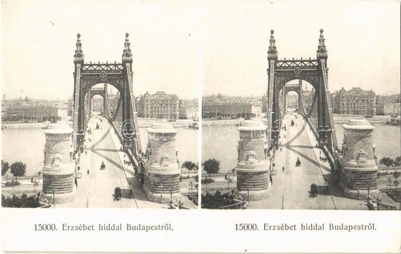 Budapest, Erzsébet híd. Würthle & Sohn Nachfolger sztereó képeslap... https://www.darabanth.com/de/363-Fernauktion/363.0/Ansichtskarten/Ungarn~1500005/Budapest-Erzsebet-hid-Wurthle-Sohn-Nachfolger-sztereo-kepeslap-stereo-postcard~II2097578