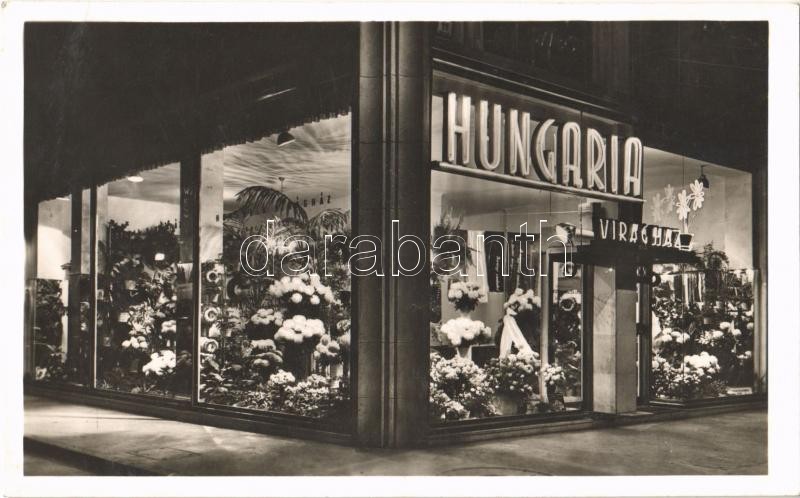 Budapest V. Hungária Virágház kertészet, kirakat este. Múzeum krt. 11. https://www.darabanth.com/de/363-Fernauktion/363.0/Ansichtskarten/Ungarn~1500005/Budapest-V-Hungaria-Viraghaz-kerteszet-kirakat-este-Muzeum-krt-11~II2098257