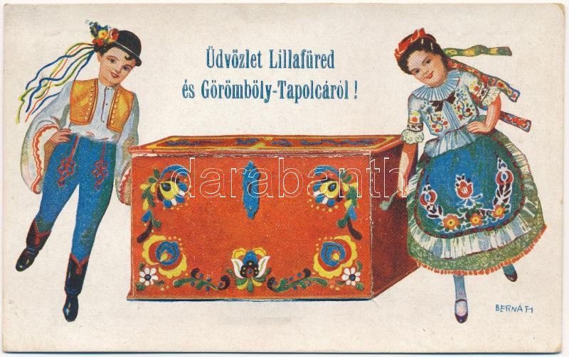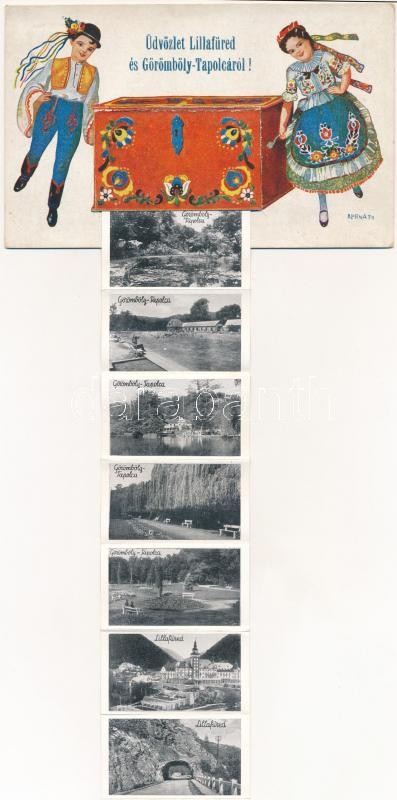 Beschreibung: Lillafüred és Görömböly-Tapolca (Miskolc), népviseletes leporellolap / folklore leporellocard s: Bernáth