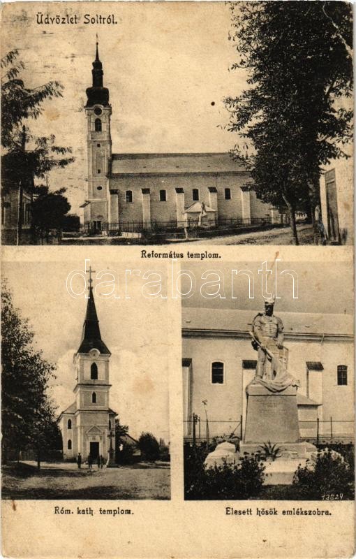 Solt, Református és római katolikus templom, Elesett hősök emlékszobra... https://www.darabanth.com/de/363-Fernauktion/363.0/Ansichtskarten/Ungarn~1500005/Solt-Reformatus-es-romai-katolikus-templom-Elesett-hosok-emlekszobra-Vajda-Jozsef-es-Becz~II1968090