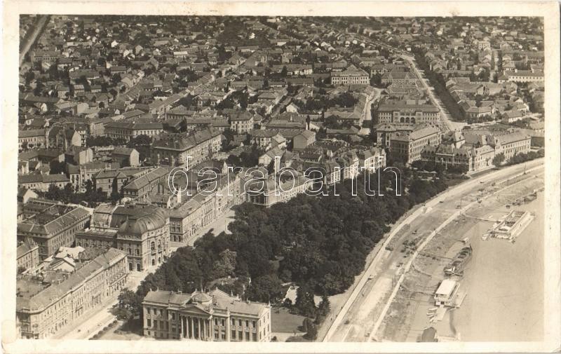 Beschreibung: Szeged, Stefánia sétány, Múzeum, Színház. Légi felvétel. Aerophoto. Délvidéki Aero Klub + "1936 Szegedi Szabadtéri Játékok" So. Stpl.