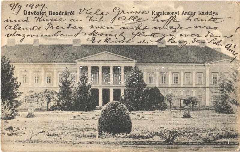 1909 Beodra, Novo Milosevo; Karátsonyi Andor kastélya / castle (EK) https://www.darabanth.com/de/363-Fernauktion/363.0/Ansichtskarten/Vojvodina~1500010/1909-Beodra-Novo-Milosevo-Karatsonyi-Andor-kastelya-castle-EK~II2081569
