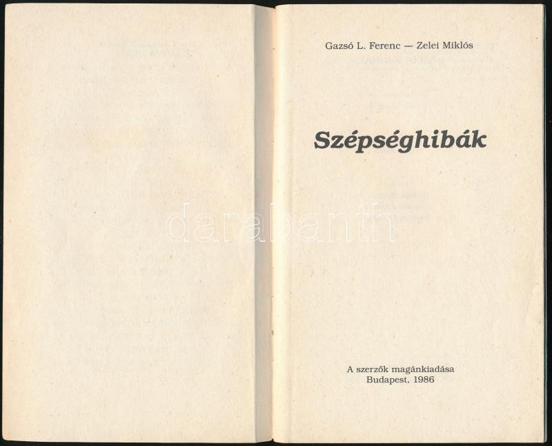 Gazsó L. Ferenc-Zelei Miklós: Szépséghibák. Bp., 1986., Szerzői magánk... https://www.darabanth.com/de/363-Fernauktion/363.0/Bucher/Bucher-Andere-kuriositaten~1000018/Gazso-L-Ferenc-Zelei-Miklos-Szepseghibak-Bp-1986-Szerzoi-magankiadas-Kiadoi-papirk~II2098386