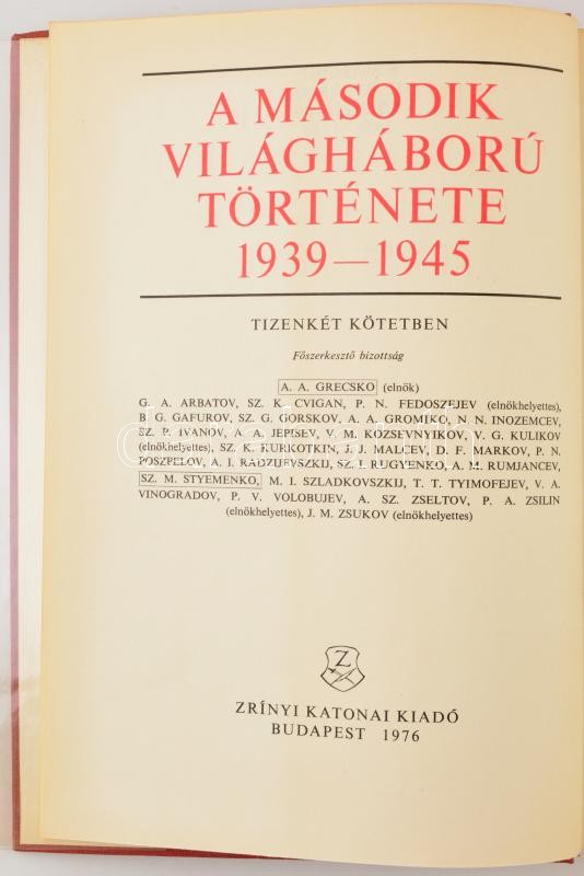 A második világháború története. 1939-1945. 1-12. köt. Bp.,1976-1984, ... https://www.darabanth.com/de/363-Fernauktion/363.0/Bucher/Bucher-Geschichte~1000004/A-masodik-vilaghaboru-tortenete-1939-1945-1-12-kot-Bp-1976-1984-Zrinyi-Kiadoi-aranyo~II2097665