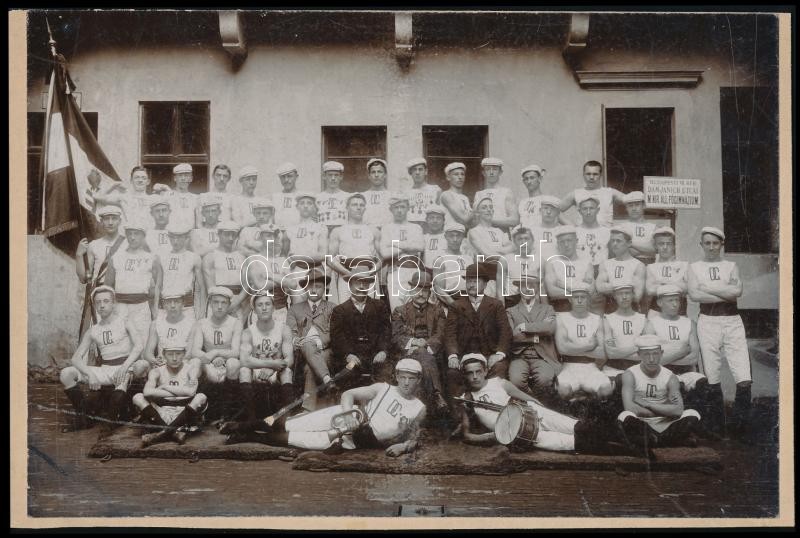 Beschreibung: cca 1900 Budapest VII,. Damjanich utca: A M. Kir. Állami főgimnázium sportolóit ábrázoló csoportkép. Kartonon, jó állapotban 24x16 cm