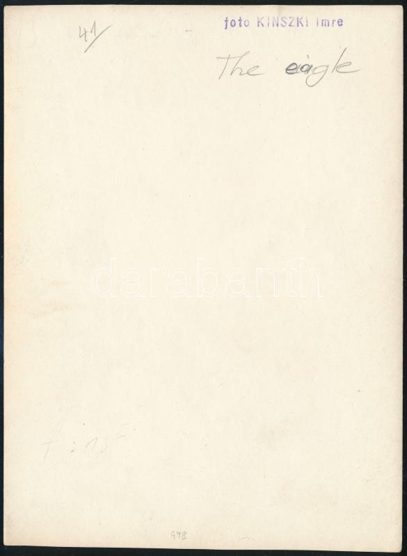 Beschreibung: cca 1935 Kinszki Imre (1901-1945) budapesti fotóművész pecséttel jelzett, vintage fotóművészeti alkotása (The Eagle), 17,6x13 cm