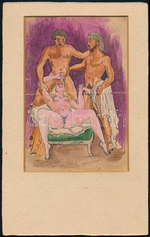Jelzés nélkül: Pornográf jelenet. Akvarell, papír, 15×10 cm https://www.darabanth.com/de/363-Fernauktion/363.0/Gemalde-und-Grafiken/Gemalde-und-Grafiken~500001/Jelzes-nelkul-Pornograf-jelenet-Akvarell-papir-15C39710-cm~II2096940