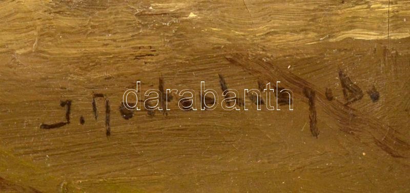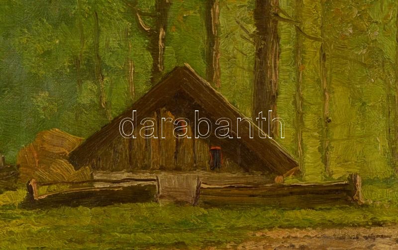 Beschreibung: Mesterházy Dénes (?-?): Erdei lak, olaj-vászon, jelzett, keretben, 50×40 cm