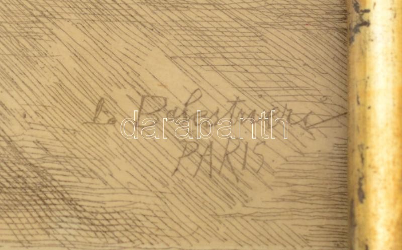 Beschreibung: cca 1900 Lionello Balestrieri után: Beethoven. Rézkarc, papír, jelzett a karcon, üvegezett különleges keretben (kopott), 15×31 cm