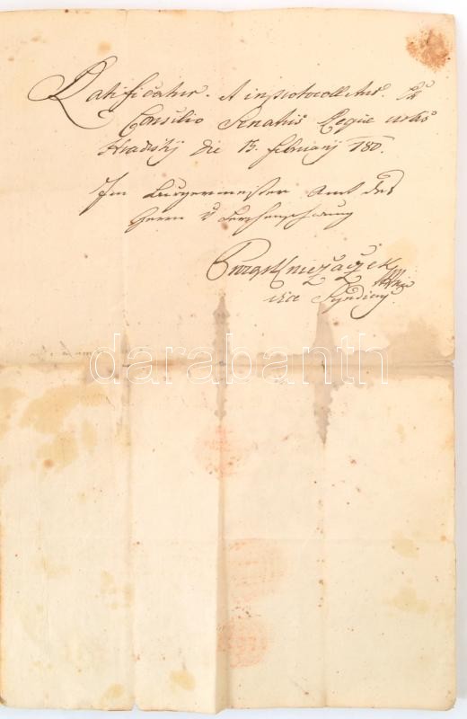 1780 Mödlingben kiállított német nyelvű okirat több címeres viaszpecsé... https://www.darabanth.com/de/363-Fernauktion/363.0/Kunst-Dokumente-andere-Sammelgebiete/Dokument~500018/1780-Modlingben-kiallitott-nemet-nyelvu-okirat-tobb-cimeres-viaszpecsettel-es-hradyi-kihird~II2099359