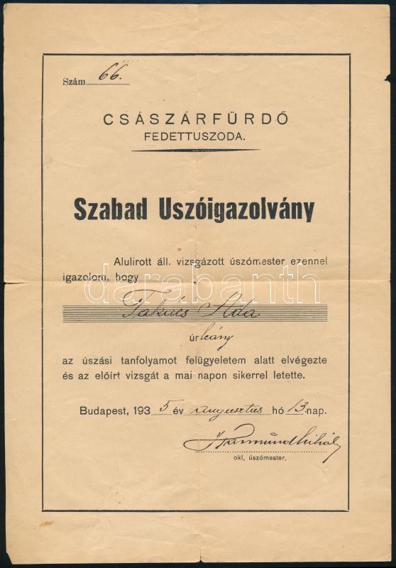 1935 Bp., Császárfürdő Fedettuszoda szabad úszóigazolvány https://www.darabanth.com/de/363-Fernauktion/363.0/Kunst-Dokumente-andere-Sammelgebiete/Dokument~500018/1935-Bp-Csaszarfurdo-Fedettuszoda-szabad-uszoigazolvany~II2096885