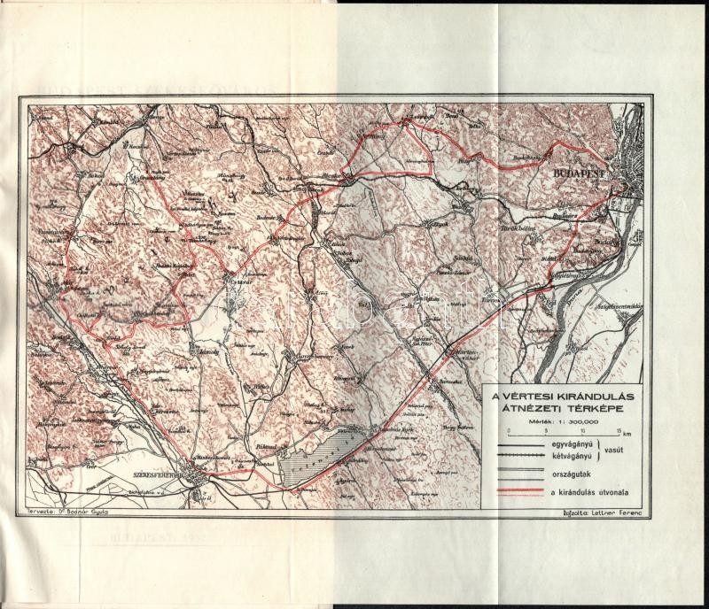 Beschreibung: 1937 Budapest székesfőváros iskolai kirándulóvonatai, A Vértes-hegység, térképpel