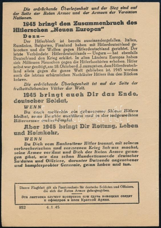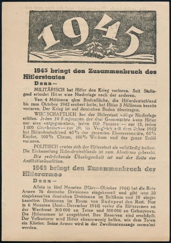 1945 Német nyelvű szovjet röplap Hitler államának összeomlásáról https://www.darabanth.com/de/363-Fernauktion/363.0/Kunst-Dokumente-andere-Sammelgebiete/Drucksachen~500030/1945-Nemet-nyelvu-szovjet-roplap-Hitler-allamanak-osszeomlasarol~II2097471