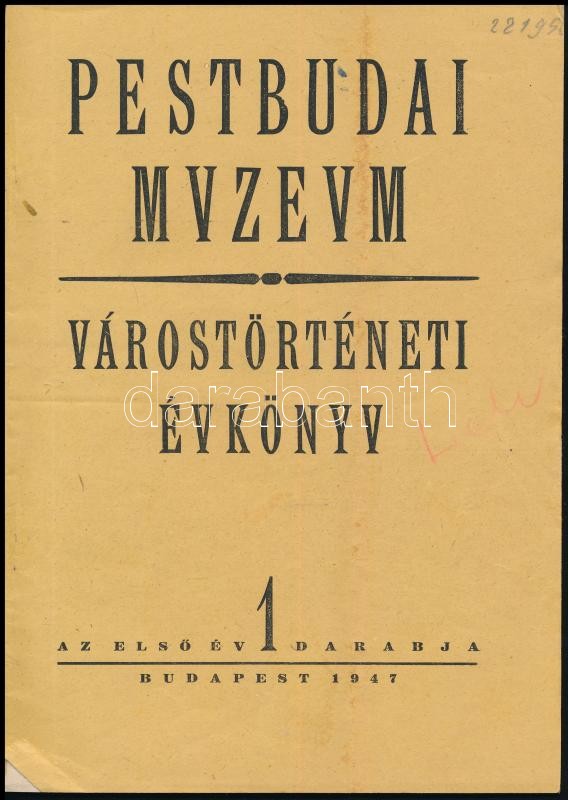 1947 Pestbudai Múzeum - várostörténeti évkönyv, I. évfolyam 1. szám https://www.darabanth.com/de/363-Fernauktion/363.0/Kunst-Dokumente-andere-Sammelgebiete/Drucksachen~500030/1947-Pestbudai-Muzeum-varostorteneti-evkonyv-I-evfolyam-1-szam~II2096484