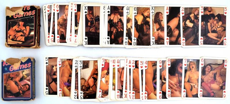Beschreibung: 2 db 54 lapos pornó kártya, sérült dobozokban, de a lapok jó állapotban.