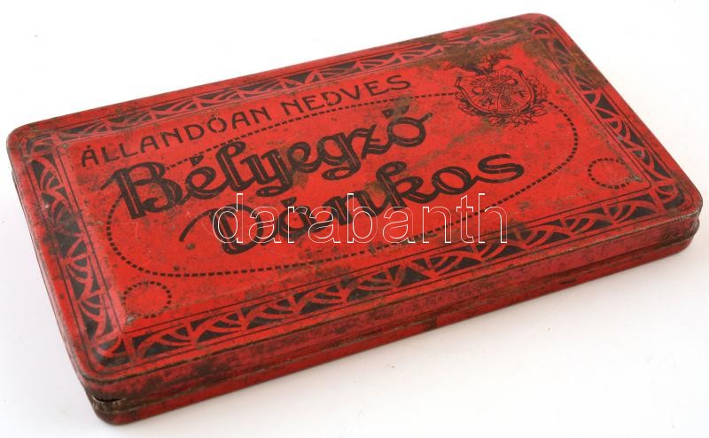 Régi bélyegzővánkos fém doboza, kopott, 16,5×9,5 cm https://www.darabanth.com/de/363-Fernauktion/363.0/Kunst-Dokumente-andere-Sammelgebiete/Flohmarkt~500012/Regi-belyegzovankos-fem-doboza-kopott-16-5C3979-5-cm~II2100921