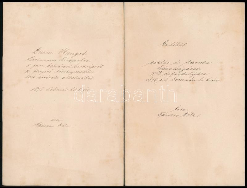 1876-1881 Tánczos Béla ügyvéd tréfás versikéi. 1876-1878-1881. Kettő kézzel írt, egy nyomtatott (: Arra a bizonyos "installatióra." Bp., Károlyi György-ny.), 13+3+8+8 p.