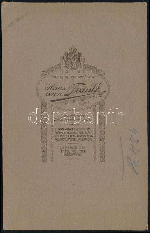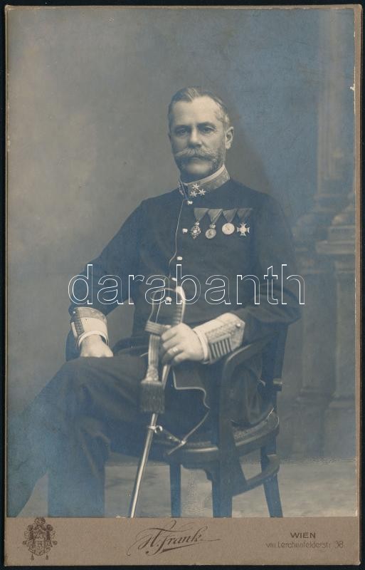 cca 1900-1910 Éder Pál (1849-1916) ezredes, a soproni cs. és kir. báró Salis-Soglio Gyalogezred tisztjének keményhátú portré fotója, Wien, Hans Frank műterméből, 16x10 cm közötti méretben