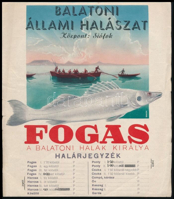 cca 1930-1946 Siófok, Balatoni Állami Halászat halárjegyzék, kis szaka... https://www.darabanth.com/de/363-Fernauktion/363.0/Kunst-Dokumente-andere-Sammelgebiete/Schiffe-Plattensee~500027/cca-1930-1946-Siofok-Balatoni-Allami-Halaszat-halarjegyzek-kis-szakadasokkal-24x21-cm~II2096530