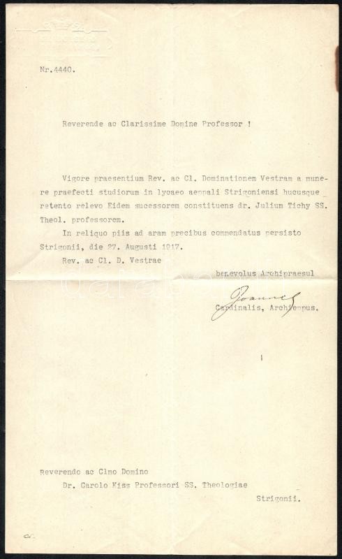 1917 Csernoch János (1852-1927) bíboros által saját kezűleg aláírt lat... https://www.darabanth.com/de/363-Fernauktion/363.0/Kunst-Dokumente-andere-Sammelgebiete/Signatur~500020/1917-Csernoch-Janos-1852-1927-biboros-altal-sajat-kezuleg-alairt-latin-nyelvu-kinevezesi-~II2098396