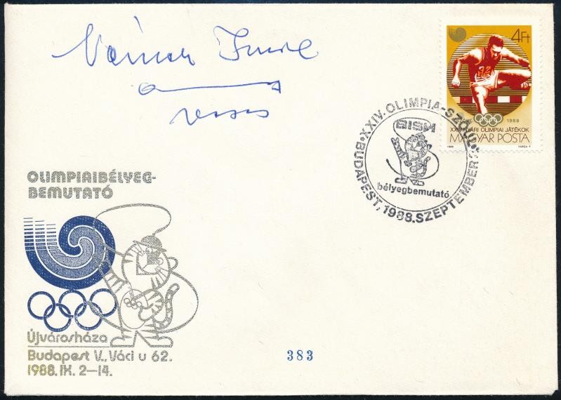 Beschreibung: Németh Imre olimpiai bajnok kalapácsvető aláírása olimpia FDC-n