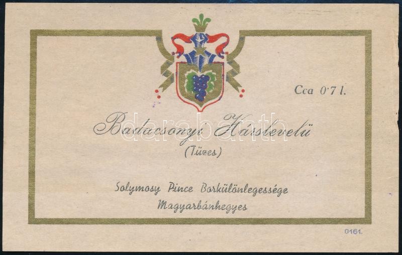 Badacsonyi Hárslevelű Solymosy Pince Borkülönlegessége Magyarbánhegyes... https://www.darabanth.com/de/363-Fernauktion/363.0/Kunst-Dokumente-andere-Sammelgebiete/Werbungen~500022/Badacsonyi-Harslevelu-Solymosy-Pince-Borkulonlegessege-Magyarbanhegyes-regi-cimke~II2098718