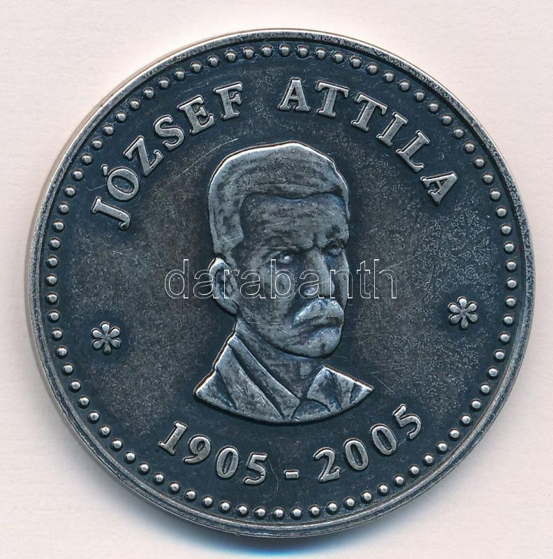 DN "József Attila 1905-2005" fém emlékérem (42,5mm) T:2 https://www.darabanth.com/de/363-Fernauktion/363.0/Numismatik/Ungarische-Gedenkmunzen-Plaketten~2000009/DN-Jozsef-Attila-1905-2005-fem-emlekerem-42-5mm-T2~II2097321