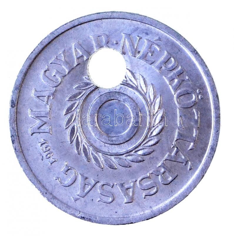 1961. 2f Al technológiai hibás veret (félrecsúszott lyukasztás) T:1- https://www.darabanth.com/de/363-Fernauktion/363.0/Numismatik/Ungarische-Munzen-und-Munzen-mit-ungarischem-Munzzeichen~2000008/1961-2f-Al-technologiai-hibas-veret-felrecsuszott-lyukasztas-T1-~II2100801