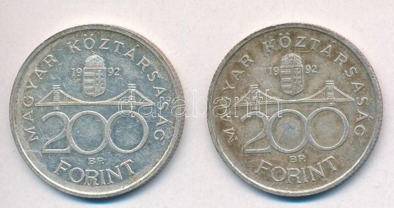 1992. 200Ft Ag "MNB" (2x) T:1-,2 patina