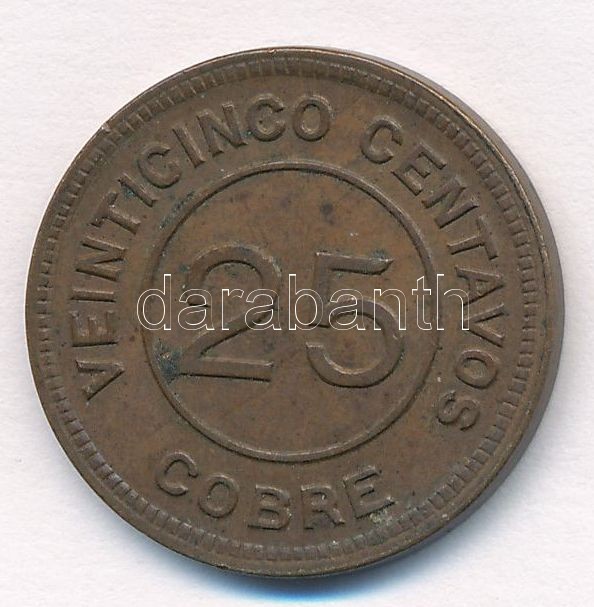 Guatemala 1915. 25 Centavos ... https://www.darabanth.com/de/363-Fernauktion/363.0/Numismatik/Weltweit-Munzen~2000014/Guatemala-1915-25c-Cu-atmeneti-penz-T2-Guatemala-1915-25-Centavos-Cu-provisinal-coin-CXF-Kra~II2097194