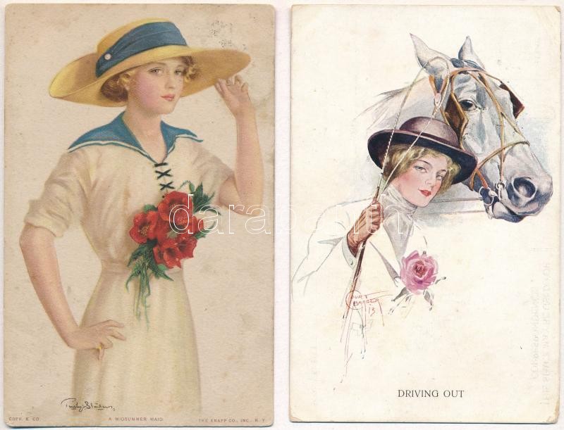 Beschreibung: 2 db régi hölgyek művészlap, az egyik Court Barber szignójával / 2 pre-1945 ladies art postcards, one of them signed by Court Barber