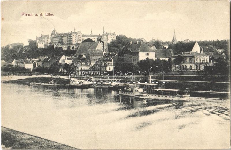 1910 Pirna, Elbe river, steamship https://www.darabanth.com/de/364-Fernauktion/364.0/Ansichtskarten/Deutschland~1000040/1910-Pirna-Elbe-river-steamship~II2105992
