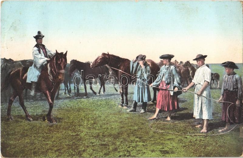 1908 Hortobágy, csikósok, folklór / Hungarian folklore, horse herdsman... https://www.darabanth.com/de/364-Fernauktion/364.0/Ansichtskarten/Folklore~1000058/1908-Hortobagy-csikosok-folklor-Hungarian-folklore-horse-herdsman-Fotochrom-L-P-P-1689~II2102138