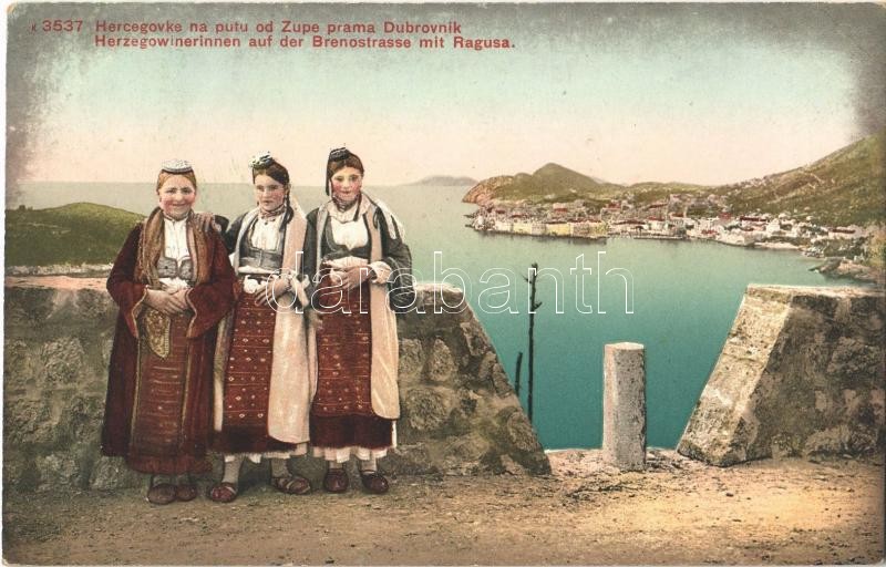 Hercegovke na putu od Zupe prama Dubrovnik / Herzegowinerinnen auf der... https://www.darabanth.com/de/364-Fernauktion/364.0/Ansichtskarten/Folklore~1000058/Hercegovke-na-putu-od-Zupe-prama-Dubrovnik-Herzegowinerinnen-auf-der-Brenostrasse-mit-Ragusa-Bos~II2108512