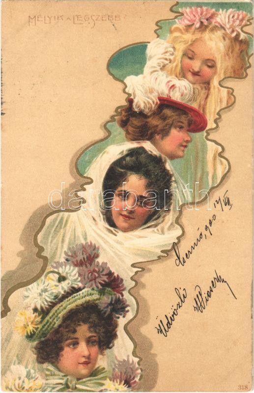 Beschreibung: 1900 Melyik a legszebb? / Which is the most beautiful? Ladies, litho (Rb)