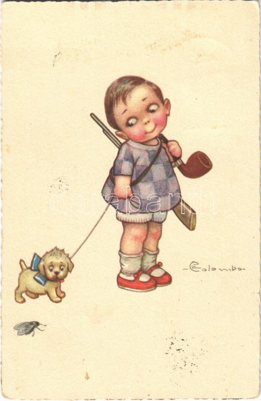 1928 Italian art postcard, child with dog. 1922-3. s: E. Colombo https://www.darabanth.com/de/364-Fernauktion/364.0/Ansichtskarten/Kunstlerkarten~1000073/1928-Italian-art-postcard-child-with-dog-1922-3-s-E-Colombo~II2105977