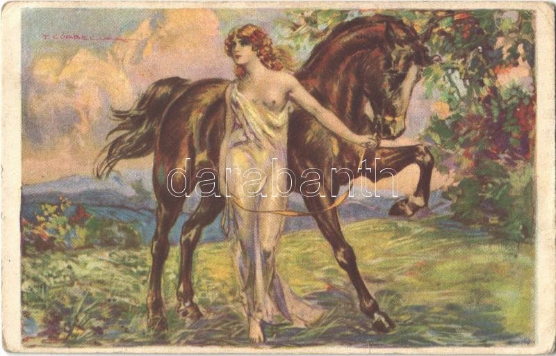 Beschreibung: Gently erotic lady with horse. Italian art postcard. Anna & Gasparini 439-4. s: T. Corbella (EK)
