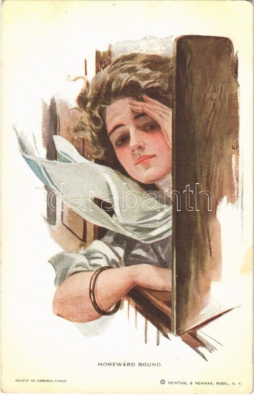 Homeward Bound. Lady, Reinthal & Newman No. 255. s: Harrison Fisher https://www.darabanth.com/de/364-Fernauktion/364.0/Ansichtskarten/Kunstlerkarten~1000073/Homeward-Bound-Lady-Reinthal-Newman-No-255-s-Harrison-Fisher~II2105894