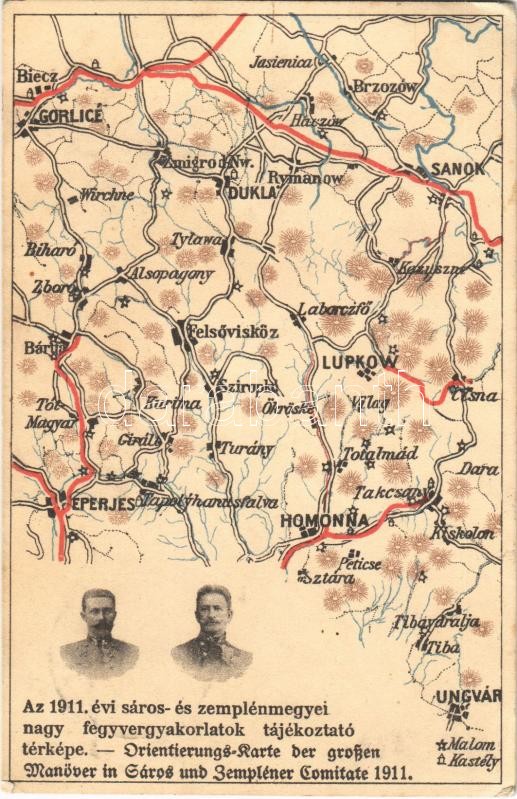 Az 1911. évi sáros- és zemplén megyei nagy fegyvergyakorlatok tájékoztató térképe. Franklin Társulat / Orientierungs-Karte der grossen Manöver in Sáros und Zempléner Comitate 1911 / Map of the military maneuvers in Sáros and Zemplén Counties