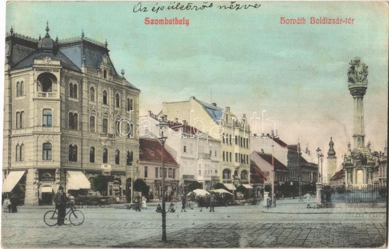 1912 Szombathely, Horváth Boldizsár tér, üzletek, piac, Szentháromság ... https://www.darabanth.com/de/364-Fernauktion/364.0/Ansichtskarten/Ungarn~1000006/1912-Szombathely-Horvath-Boldizsar-ter-uzletek-piac-Szentharomsag-szobor-Seiler-kiadasa-~II2107967