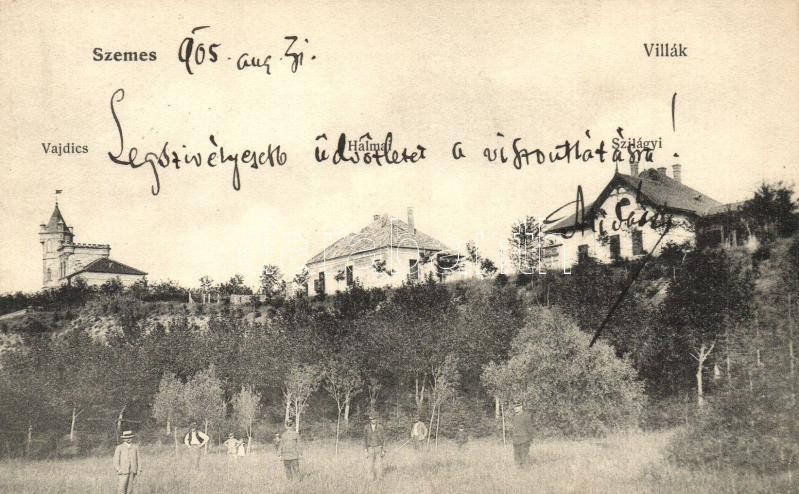 Balatonszemes, Vajdics, Halmai és Szilágyi villák https://www.darabanth.com/de/364-Fernauktion/364.0/Ansichtskarten/Ungarn~1000006/Balatonszemes-Vajdics-Halmai-es-Szilagyi-villak~II1700143